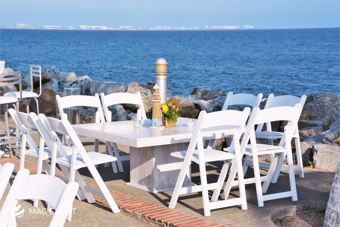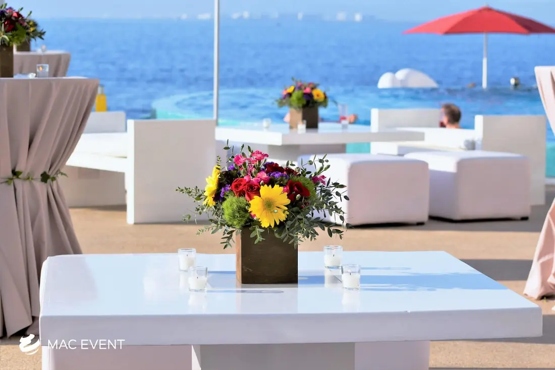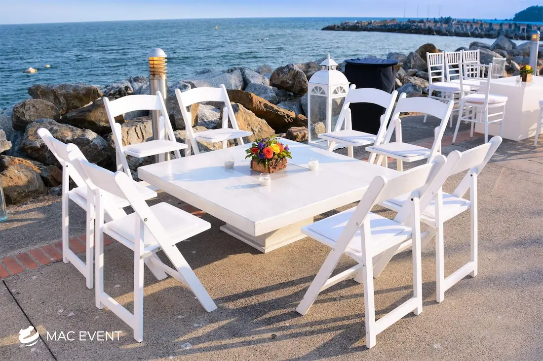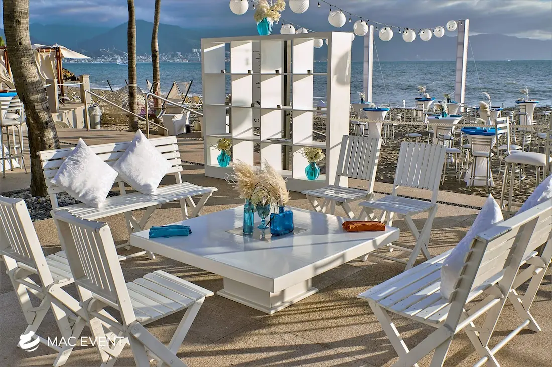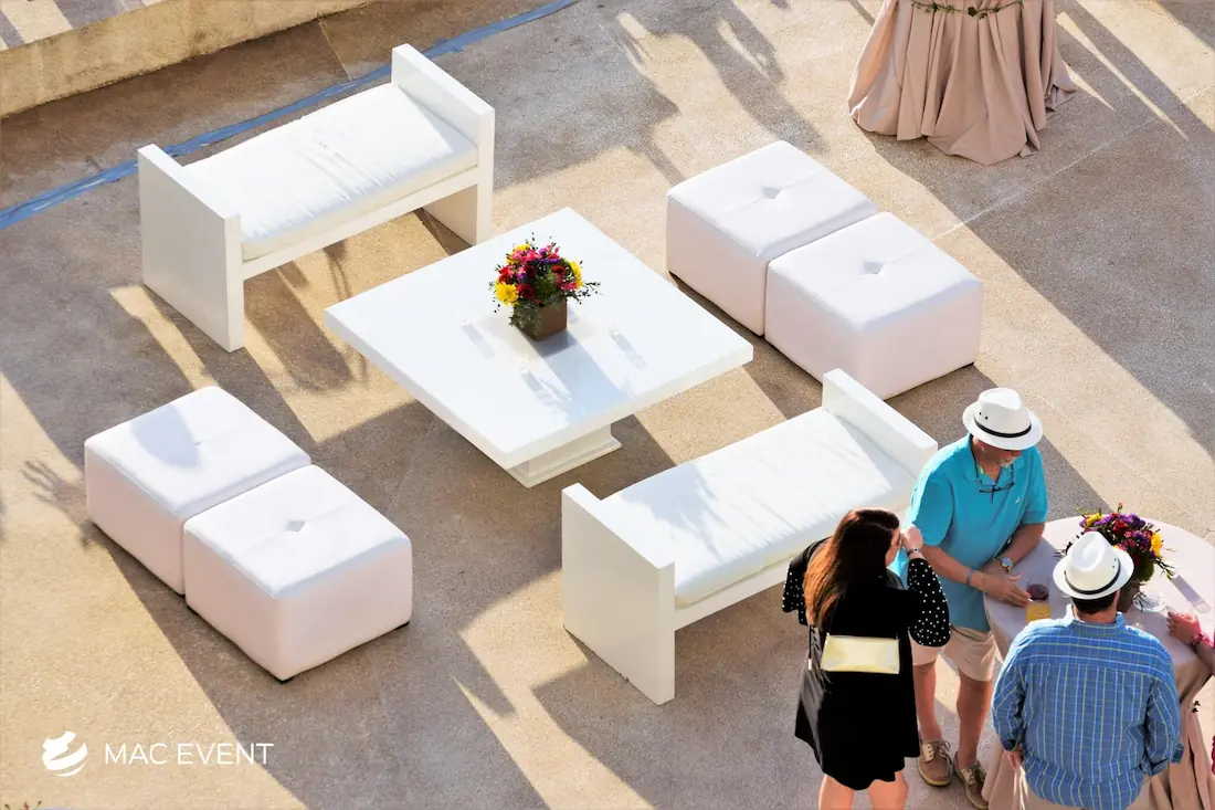 The wooden acrylic coffee table blends natural texture with modern transparency, making it a standout piece for weddings, parties, and corporate events in Isla Mujeres. Its wooden base adds warmth and character, while the clear acrylic top gives a sleek, contemporary finish that complements any décor style. This event table rental works beautifully in lounge areas, cocktail spaces, or outdoor receptions, offering both function and visual appeal. Renting wooden acrylic coffee tables in Isla Mujeres allows you to create elegant, inviting spaces where guests can relax in style. For a perfect mix of rustic charm and modern design, this table is an exceptional choice.