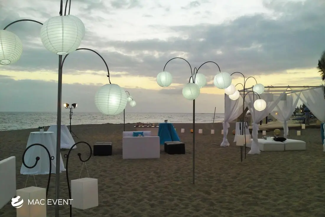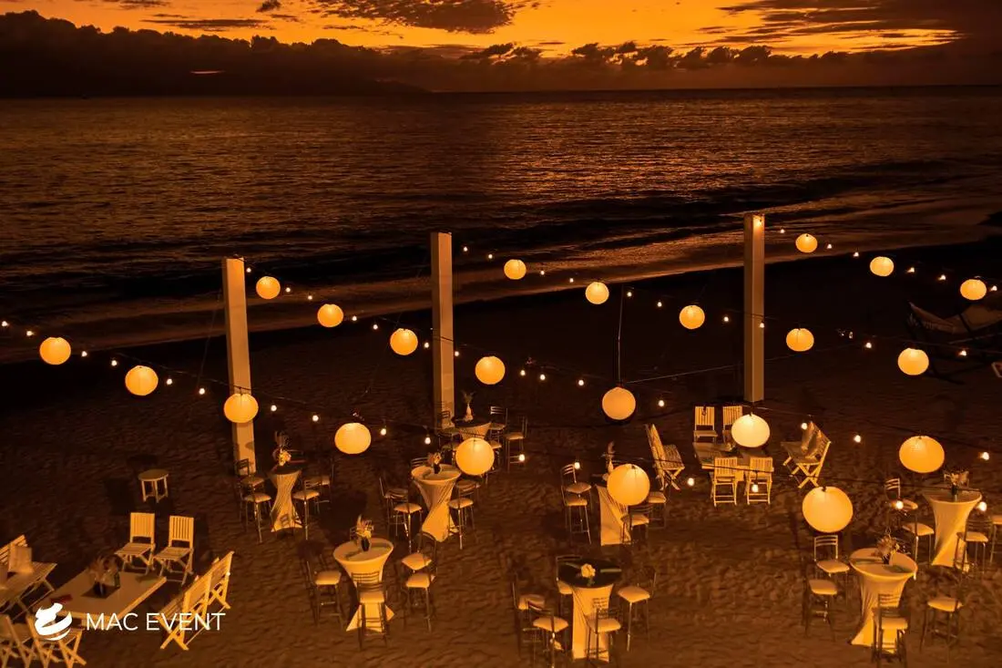 The paper lanterns add charm and a soft, romantic glow to weddings, parties, and corporate events in Isla Mujeres. Perfect for outdoor receptions, beach dinners, or garden celebrations, this event lighting rental creates a warm and inviting atmosphere. Available in various colors, sizes, and shapes, paper lanterns can be hung individually or in clusters to complement your décor. Renting paper lanterns in Isla Mujeres ensures professional installation and a cohesive look that enhances your theme. For an elegant and whimsical touch that transforms any space, the paper lanterns are a beautiful choice for any event.